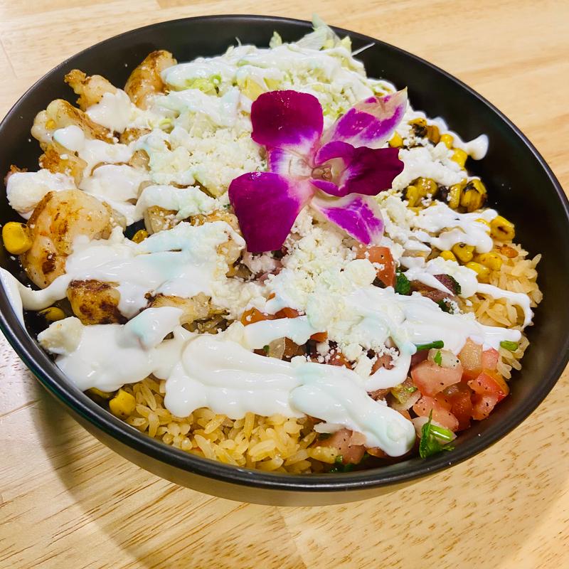Choose your protein: Steak, chicken, shrimp, birria or pastor. Served on a bed of rice, black beans. Topped with lettuce, pico de gallo, sour cream, and queso fresco