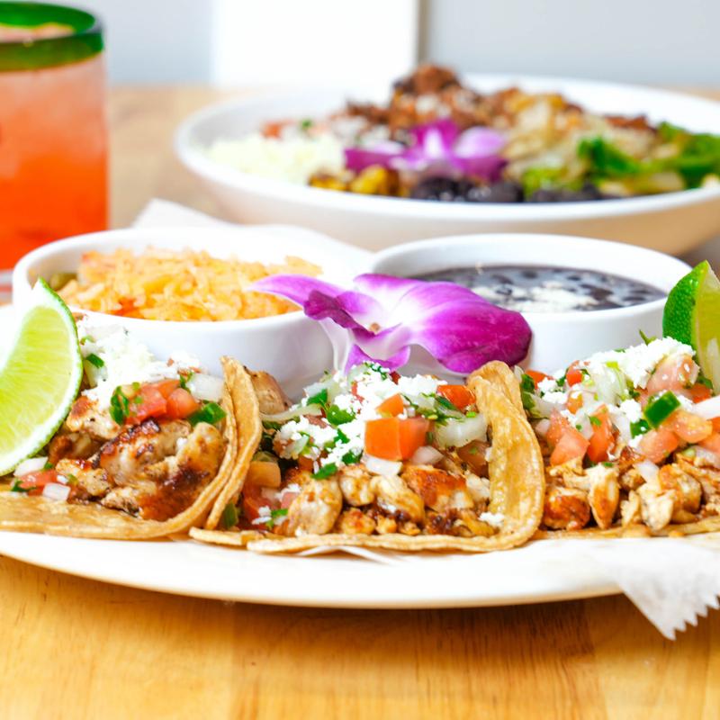 Steak, chicken, pastor and shrimp tacos served with Signature, Mexican side(rice, beans or salad)